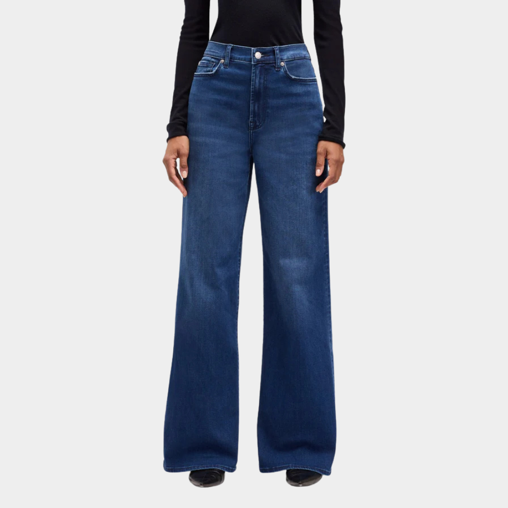 Designed to sculpt and elevate, the 7 For All Mankind Ultra High Rise Jean in Crater blends modern edge with timeless craftsmanship. This ultra-high waist silhouette hugs through the hips and thighs before releasing into a full, leg-lengthening wide leg. Crafted from smooth, stretch-infused denim, it offers all-day comfort with a flattering, figure-enhancing fit. The Crater wash features a rich indigo base with subtle whiskering and fading for a lived-in yet polished look. Finished with the iconic 7 embroidery in contrast white stitching on the back pockets, this jean is a true standout—equal parts classic and contemporary, no tailoring required.