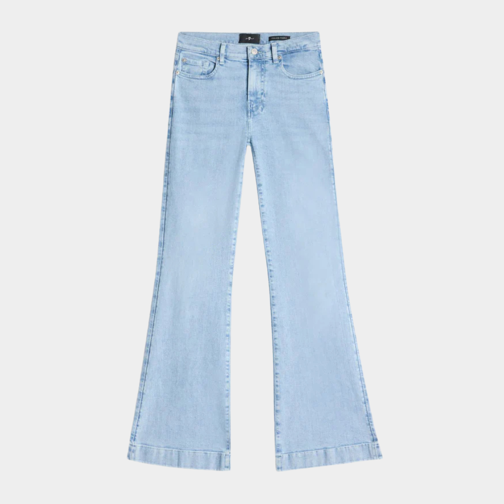 A refined update to our iconic wide-leg Dojo, now with a shorter inseam for a ready-to-wear fit. This mid-rise silhouette elongates and flatters, crafted from sculpting Slim Illusion denim that smooths and lifts like a second skin. Finished with a light wash and crystal-stitched back pockets for subtle shine.